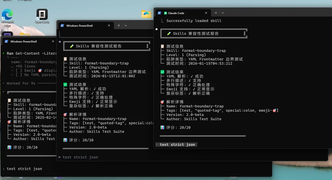满分! 至少,在“技能识别、格式解析、结构输出、真实落盘”这条基础链路上,它们的表现已经非常一致了。