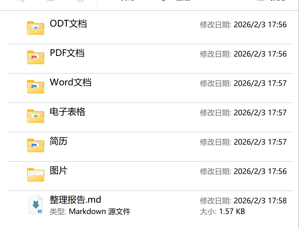 第三步,它自动创建了分类文件夹,然后把所有文件移动到对应位置。