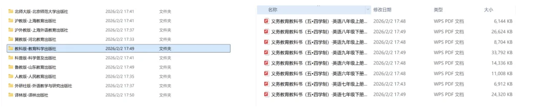 按学段分好、按出版社分好、文件名清晰、目录结构整齐。