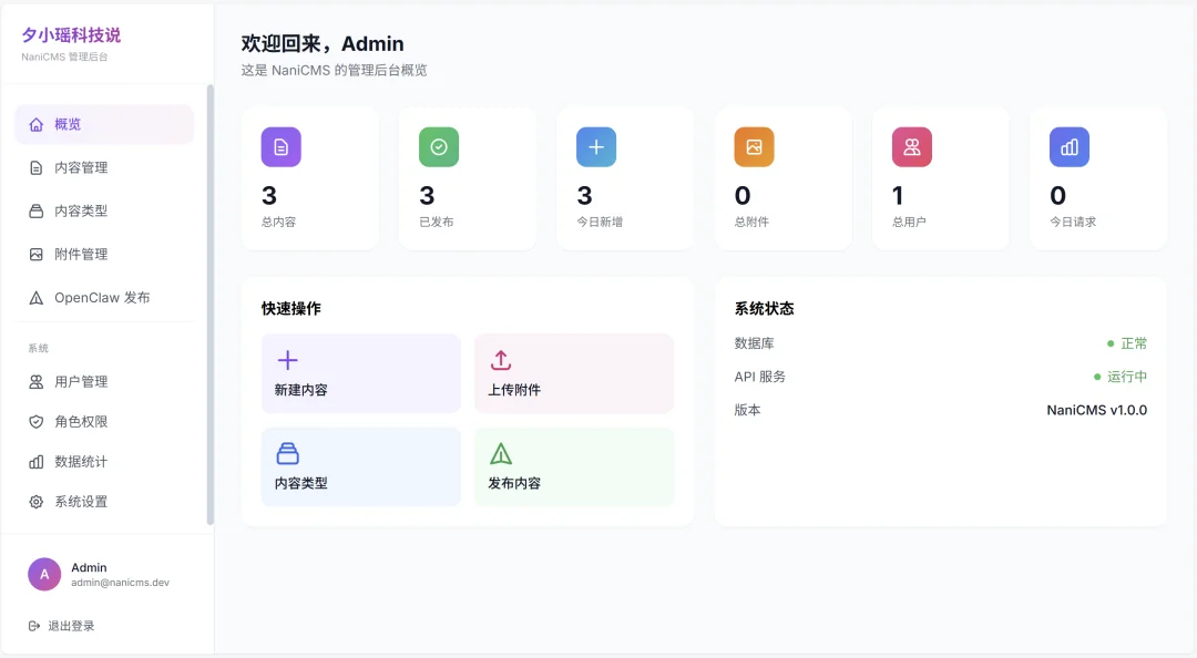 M2.5 把整套系统搭了出来。后台管理界面清晰,内容可编辑、可发布,权限、搜索、统计仪表盘一应俱全。